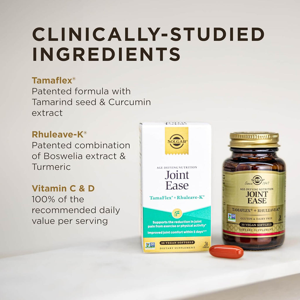 تم تصميم Solgar® Joint Ease بشكل فريد بمكونات مدعومة سريريًا لدعم صحة المفاصل.