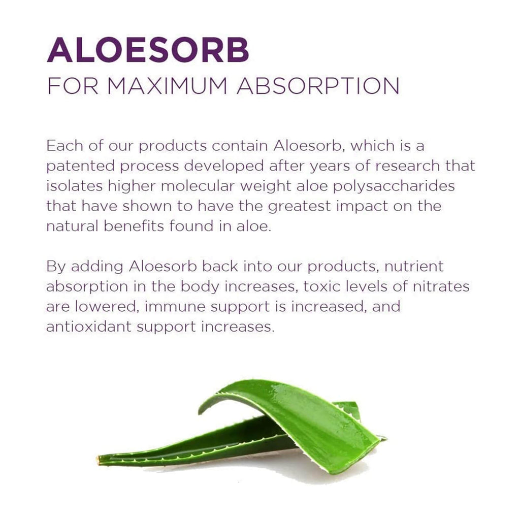 Aloesorb Naturally occurring high molecular weight aloe vera polysaccharides are isolated and then used to enhance the bio-availability of our regular strength aloe vera juice through a patent-pending process.