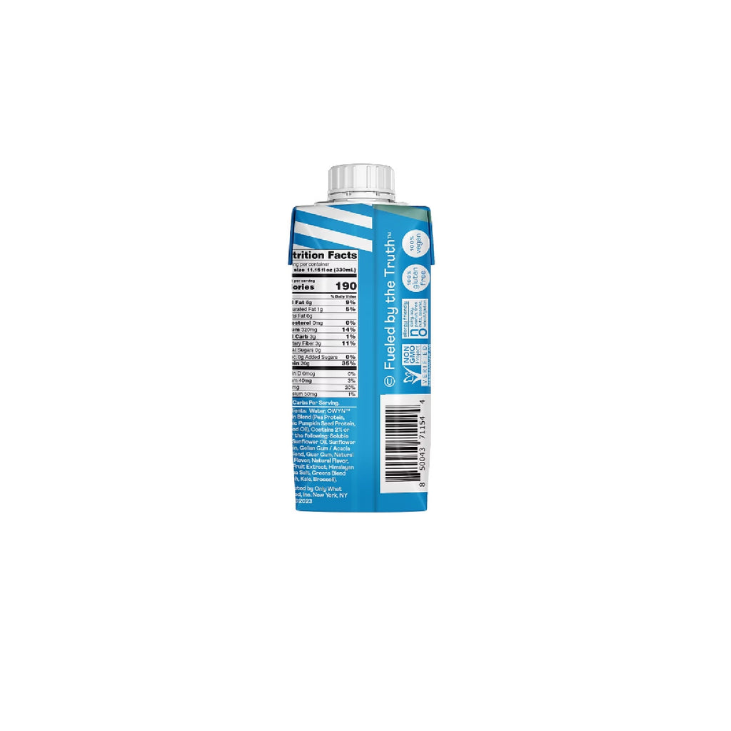 Ingredients: Water, OWYN Pea Protein Blend, Vegetable Fiber, Organic Cane Sugar, Sunflower Oil, Sunflower Lecithin, Natural Flavors.
