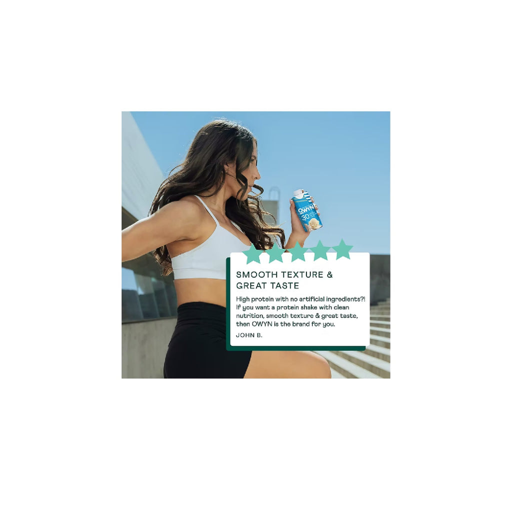 OWYN 100% Plant Based High Protein Shake delivers unbeatable taste, superior nutrition, and the cleanest nutrient profile. Enjoy 30 grams of plant protein with zero net carbs and zero grams of sugar to support keto, low sugar, and low carb diets. This vegan protein drink combines pea, organic pumpkin seeds, and organic flaxseed, so you can benefit from a complete profile of all 9 essential amino acids (the building blocks of protein) which help in maintaining and development of muscle, hair, skin and nails. Along with 30 grams of protein, each serving delivers a superfoods organic greens blend (organic Kale, spinach, and broccoli) and 535m omega 3s, which are know to be an anti-inflammatory on the body. These plant based protein shakes are third party tested to ensure no top eight allergen contamination (gluten-free, dairy-free, egg-free, soy-free, peanut-free, tree nut free, no fish and no shell fish). Keep your goals on track with this non-GMO project verified formula that's free of anything artificial.