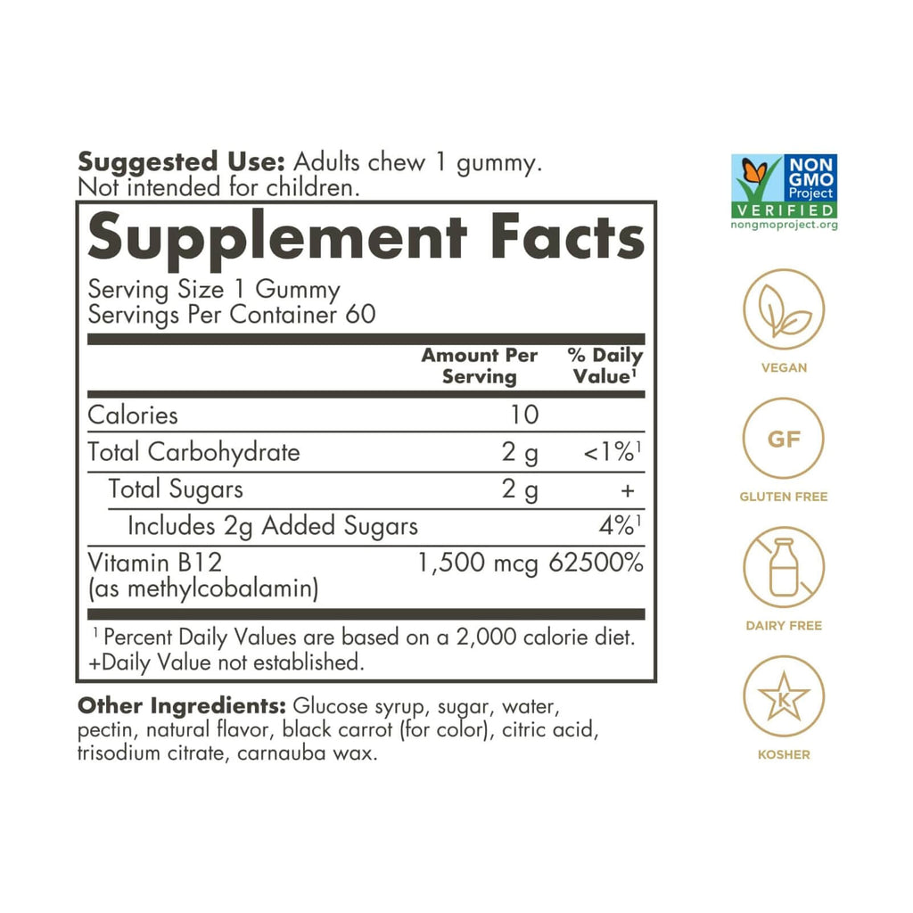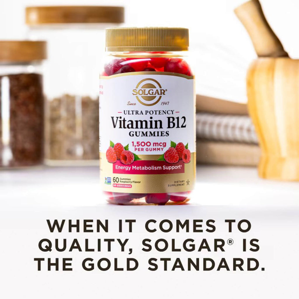 Solgar® Ultra Potency Vitamin B12 Gummies offer 1500 mcg of B12 in just one gummy — the highest potency in a single gummy.^