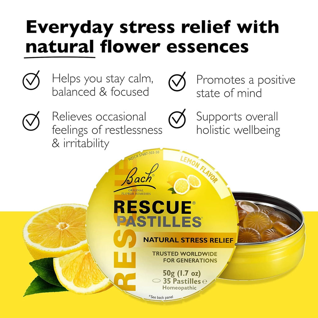 CLEARANCE! Bach RESCUE Pastilles, Natural Stress Relief, Lemon 1.7 oz, BEST BY 12/2025