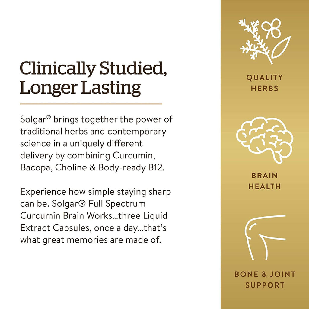 CLEARANCE! Solgar Full Spectrum Curcumin Brain Works 90 Licaps, BEST BY 01/2026