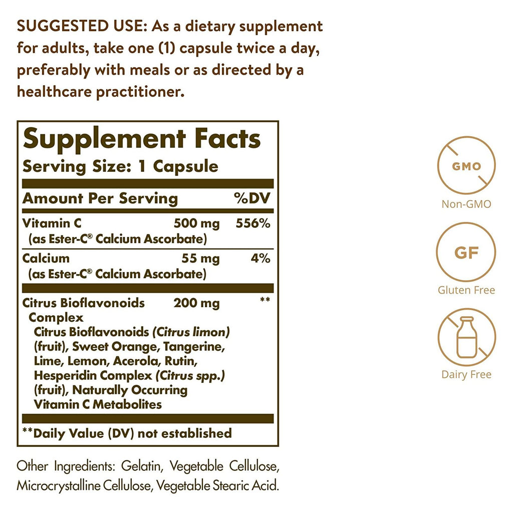 Solgar Ester-C plus 500 mg de capsules de vitamine C 90