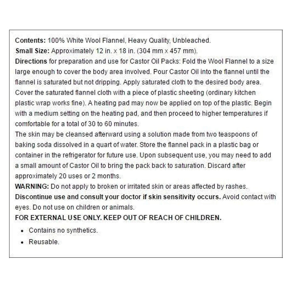 Instructions pour la préparation et l'utilisation pour les packs de santé de l'huile de ricin: Pliez la flanelle de laine à une taille suffisamment grande pour couvrir la zone du corps impliquée. Versez de l'huile de ricin dans la flanelle jusqu'à ce que la flanelle soit saturée. Appliquez une flanelle saturée sur la zone du corps souhaitée.
