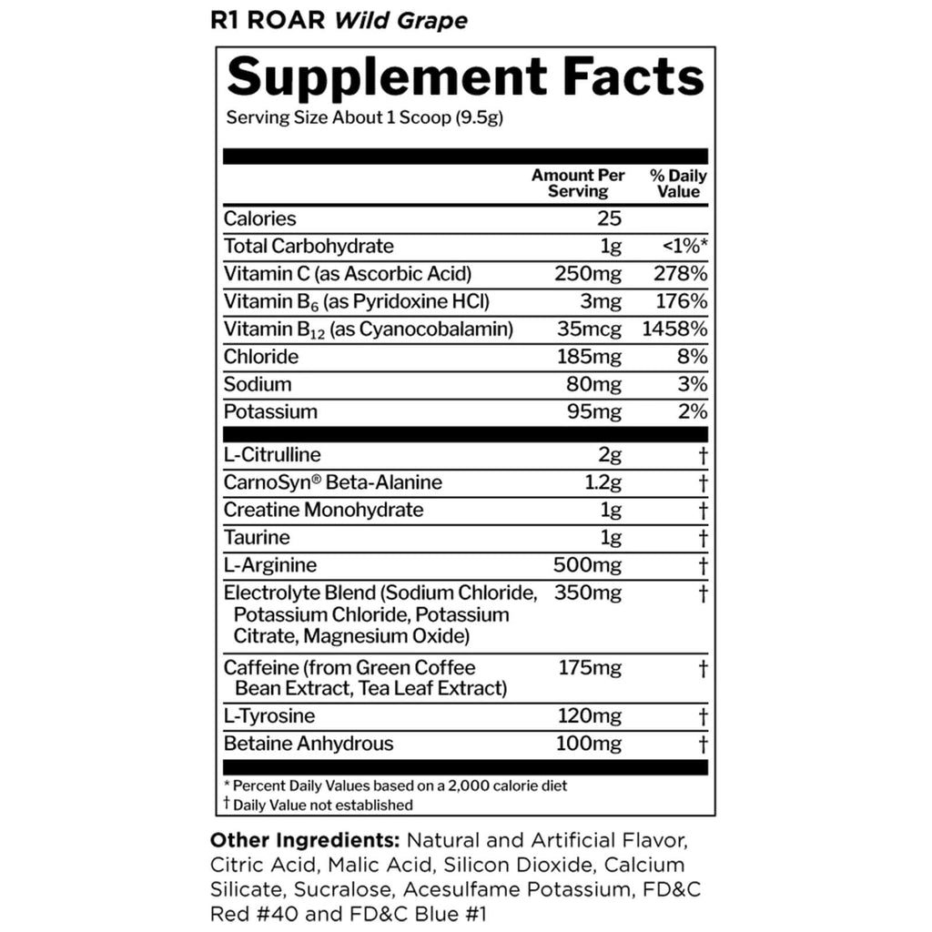 混合方向: ROAR は運動の約 30 ~ 45 分前に摂取するのが最適です。 1さじを8~12オンスの冷水に加え、よく混ざるまでかき混ぜるか振ってください。 24時間以内に2回分を超えないようにしてください。