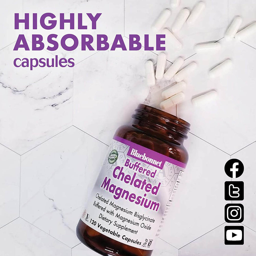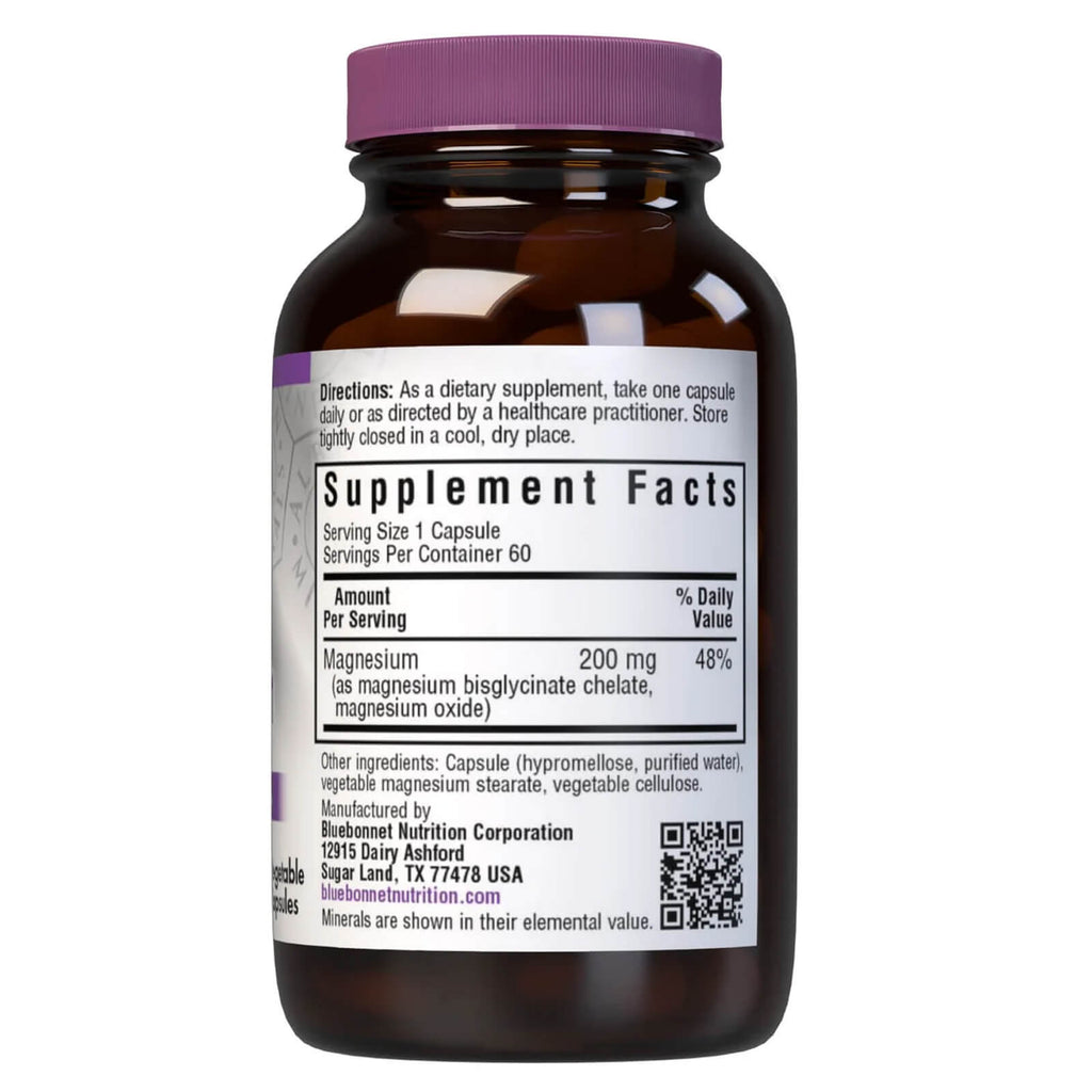 Bluebonnetの緩衝キレート化マグネシウム野菜カプセルは、酸化マグネシウムで緩衝化されたキレート化ビスグリシン酸マグネシウムを配合して pH (アルカリ度) を高め、消化管に優しくします。