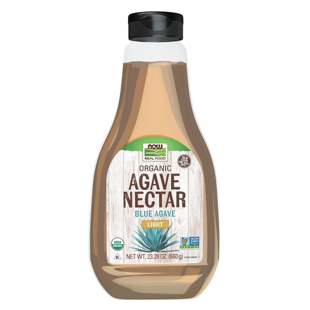 NOW Real Food® Organic Light Agave Nectar is a versatile liquid sweetener with a taste similar to honey. Its mild flavor makes it ideal for use in many culinary applications, and it’s a good substitute for honey and maple syrup. Agave nectar (also called agave syrup) is minimally processed using low temperatures and has a low glycemic index.