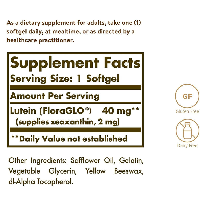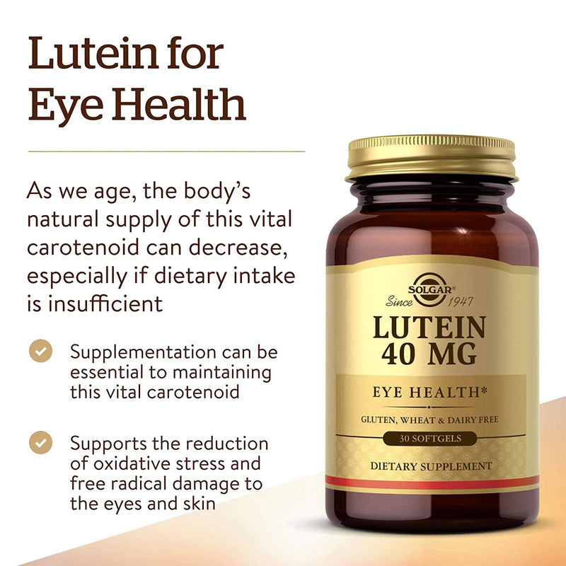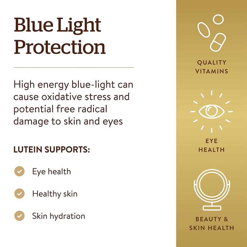 Scientific evidence indicates that Lutein helps filter out high energy blue-light from the sun and artificial light. Lutein has antioxidant properties which help fight free radicals. Free radicals can cause oxidative stress which may contribute to the premature aging of cells. Solgar® Lutein 40 mg was developed to support eye health, healthy skin and skin hydration.