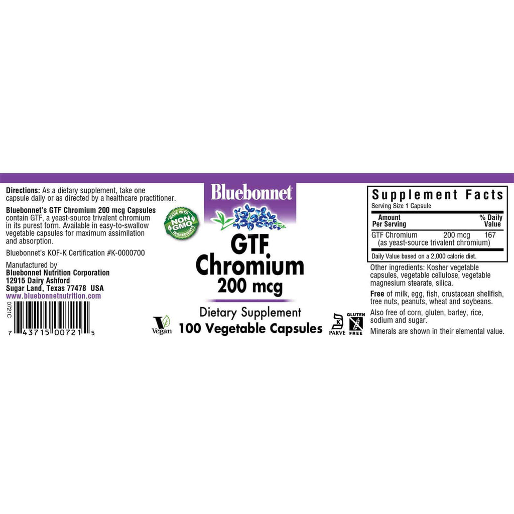 BluebonnetAs cĂĄpsulas vegetais de cromo GTF 200 mcg sĂŁo formuladas com uma forma trivalente de cromo que pode ajudar a manter os nĂveis de glicose que jĂĄ estĂŁo dentro da faixa normal.
