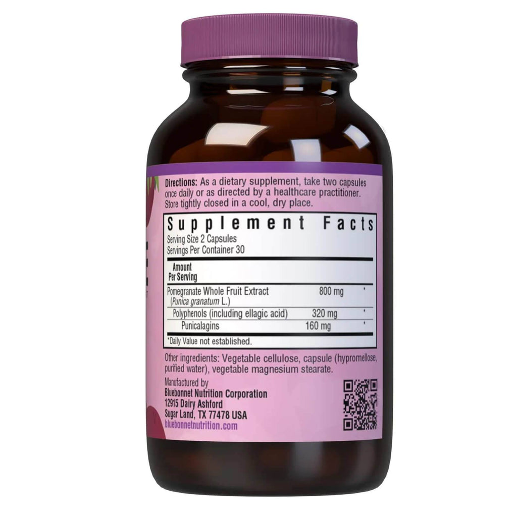 BluebonnetOs cápsulas vegetais de extrato de frutas integrais de romã são formuladas com um extrato inteiro de frutas que fornece polifenóis e punicagins que fornecem proteção de radical livre.