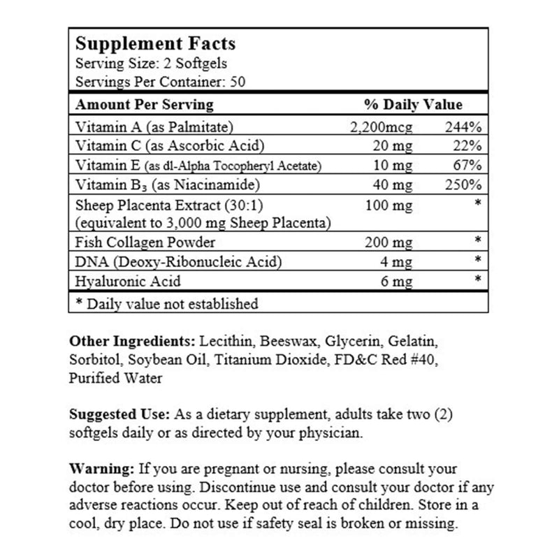 • Equivalente a 3000 mg de placenta de ovelha (30: 1)