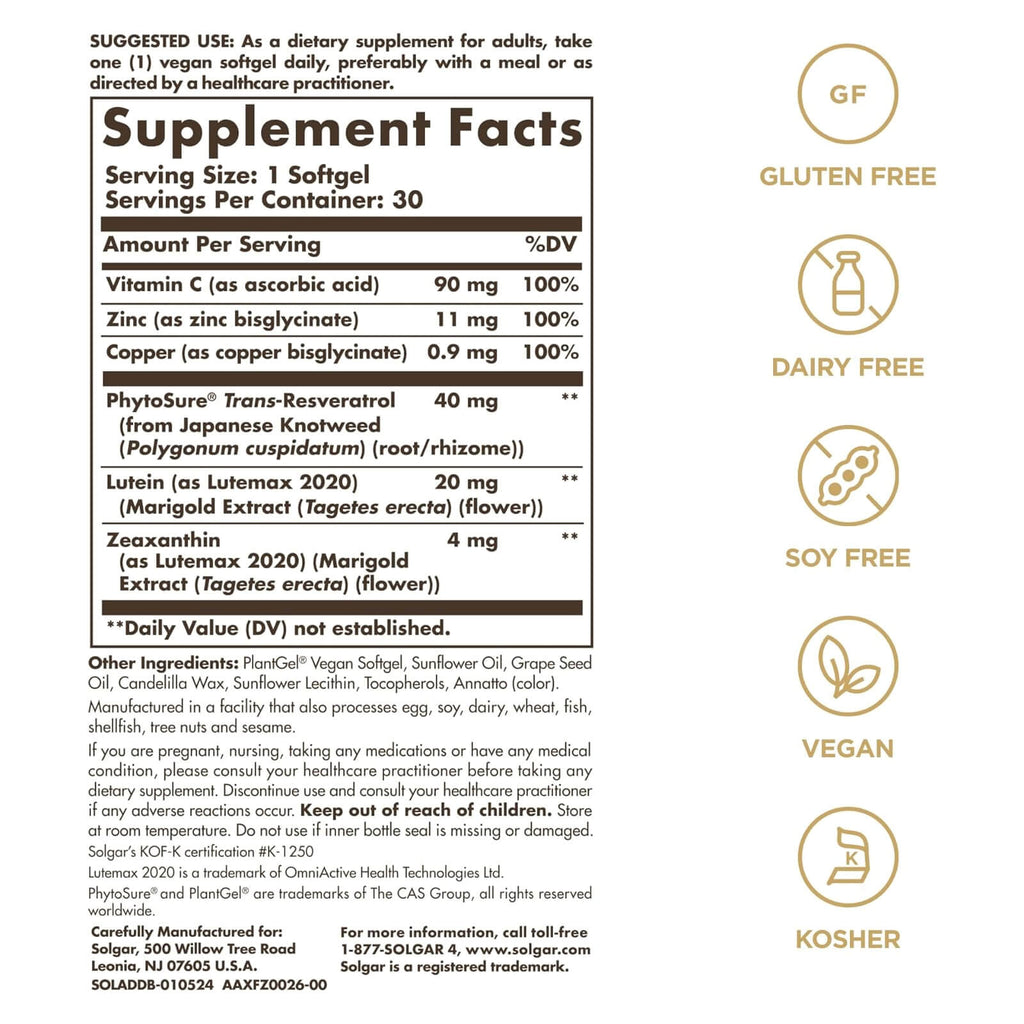 Solgar® A defesa digital é feita com ingredientes de enca triturada e é formulada exclusivamente para apoiar a saúde ocular.*