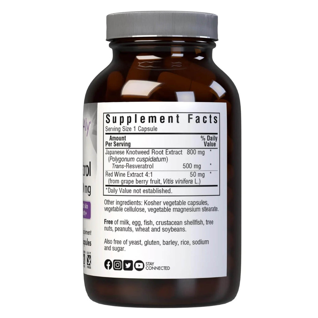 Viên nang thực vật Beautiful Ally® Resveratrol 500 mg của Bluebonnet được chế tạo đặc biệt để giúp bảo vệ da với dạng đồng phân chuyển hóa hoạt động của resveratrol từ cây hà thủ ô Nhật Bản và chiết xuất rượu vang đỏ theo tỷ lệ 4:1 từ quả nho giúp giảm tổn thương gốc tự do, có thể cải thiện tính toàn vẹn của da.♦