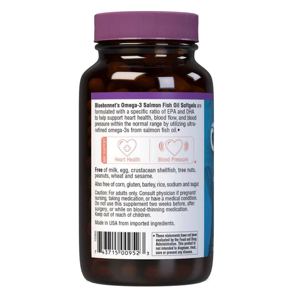 Bluebonnet使用EPA和DHA的特定比率配制了Omega-3鲑鱼油软胶,以通过利用鲑鱼鱼油的超精确的omega-3来帮助在正常范围内支持心脏健康,血液流动和血压。